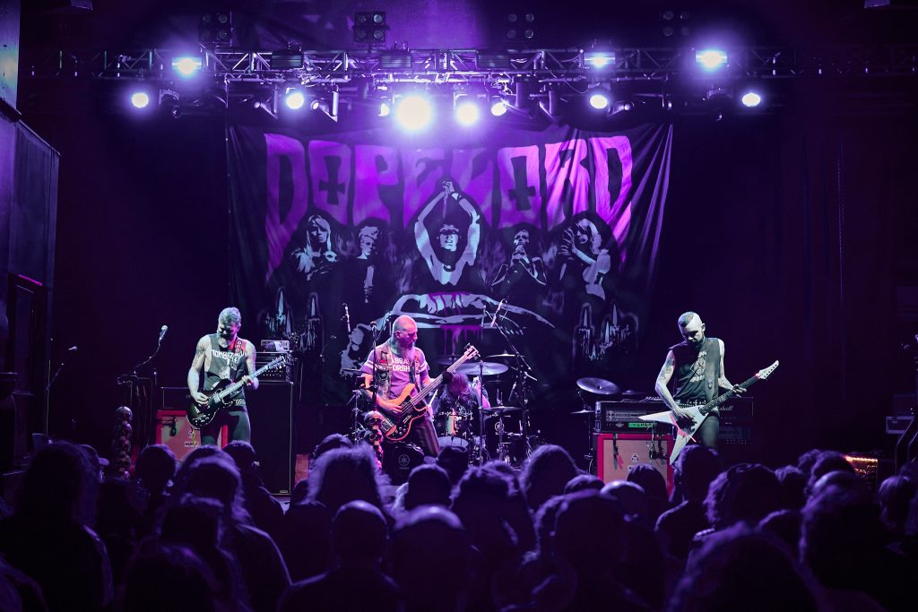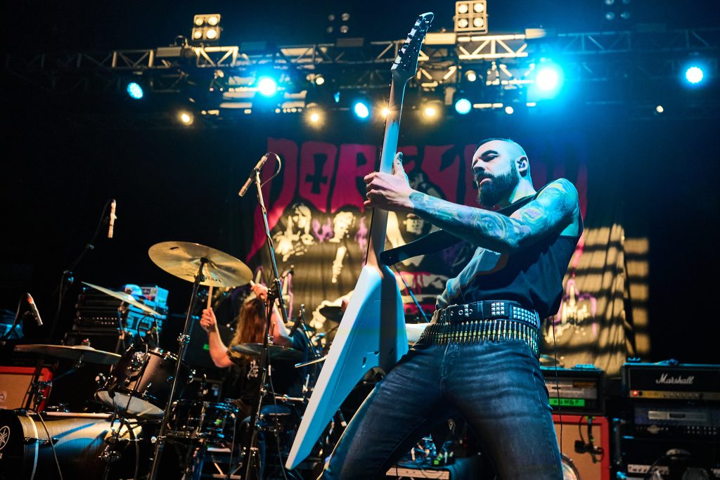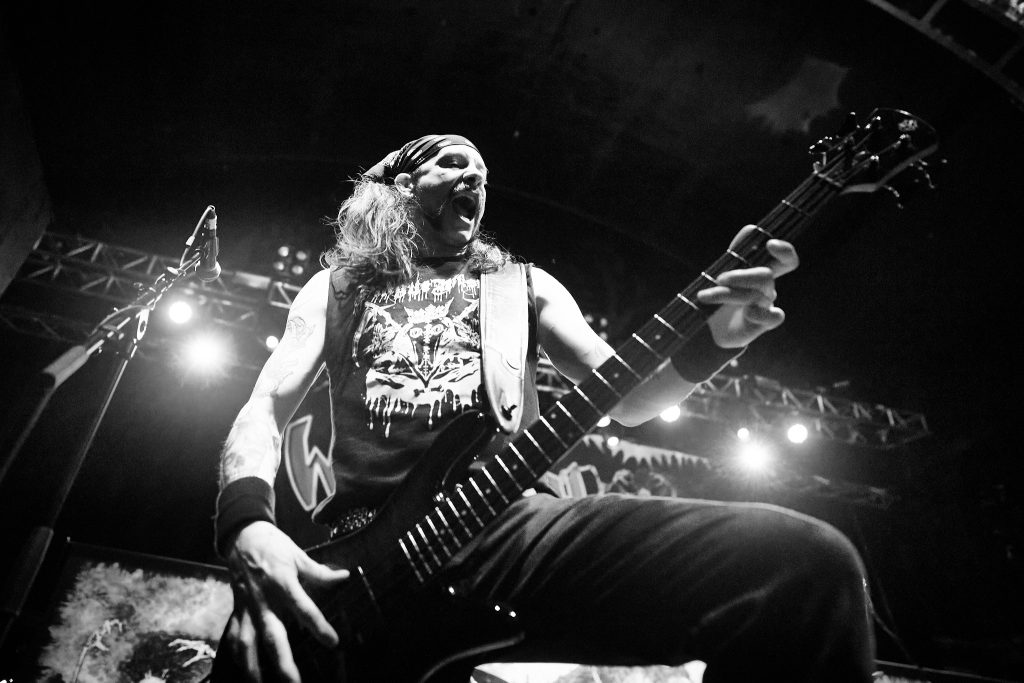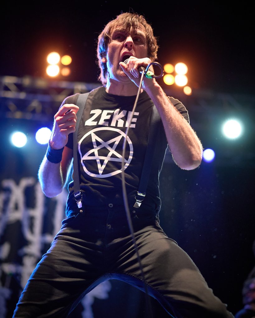 The energy that was stirred up by Dopelord, and commanded by The Varukers, was then unleashed when New Jersey Thrash band Whiplash graced the stage. With break-neck speed, the trio wasted no time playing ferocious renditions of their debut album classics, ‘Last Man Alive’, ‘Spit on Your Grave’ and ‘Red Bomb’. Frontman/guitarist Tony Portaro made a statement about the ‘Thrash, Doom, Punk and Grindcore’ platter that we were being treated to, which led to the biggest circle pit of the night so far. This electric energy culminated in their last song of the set, ‘Power Thrashing Death’.