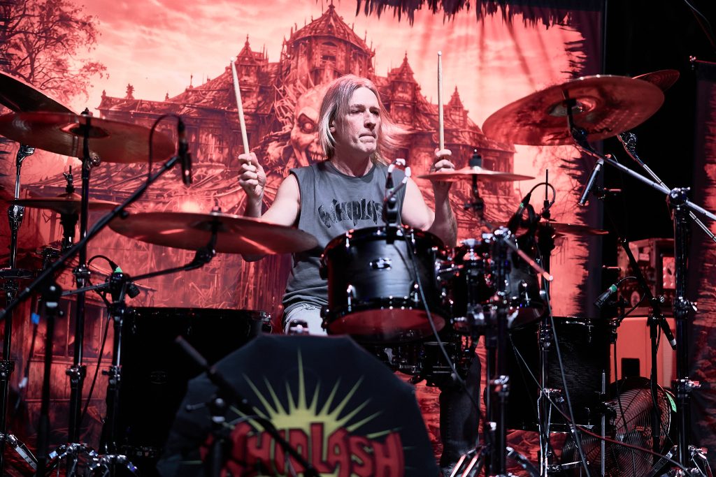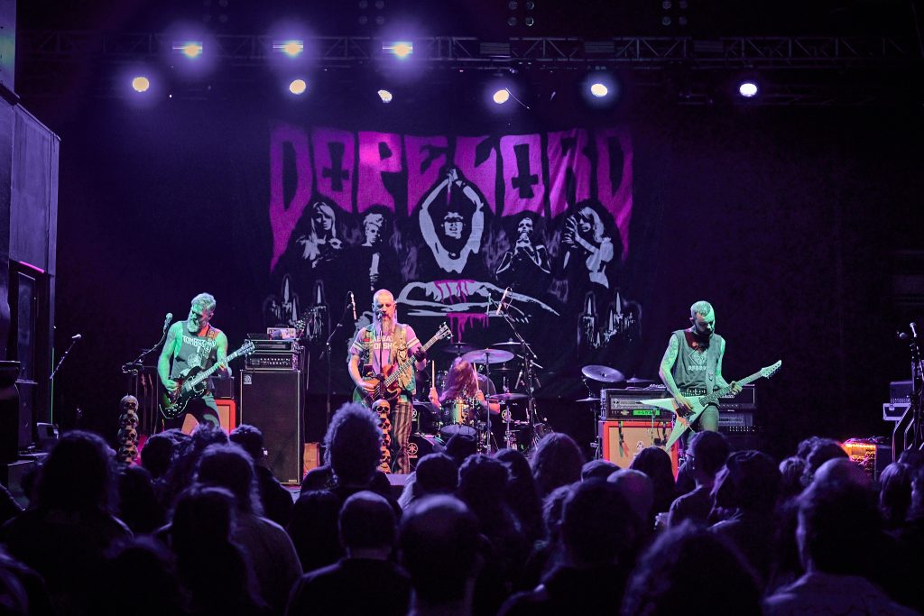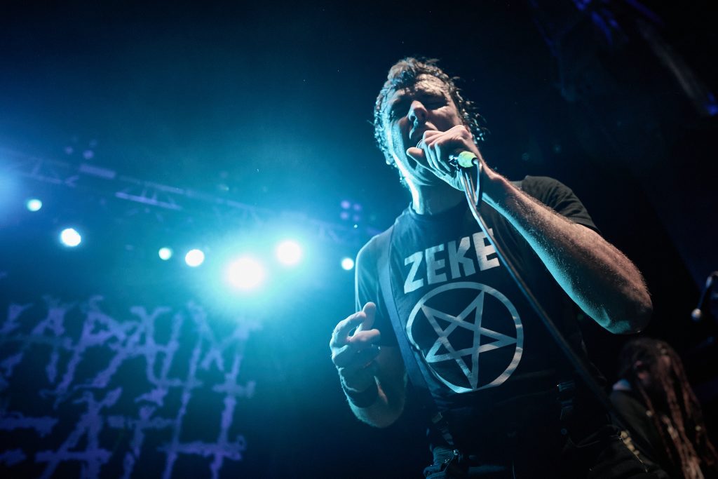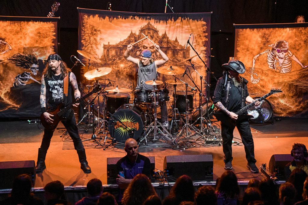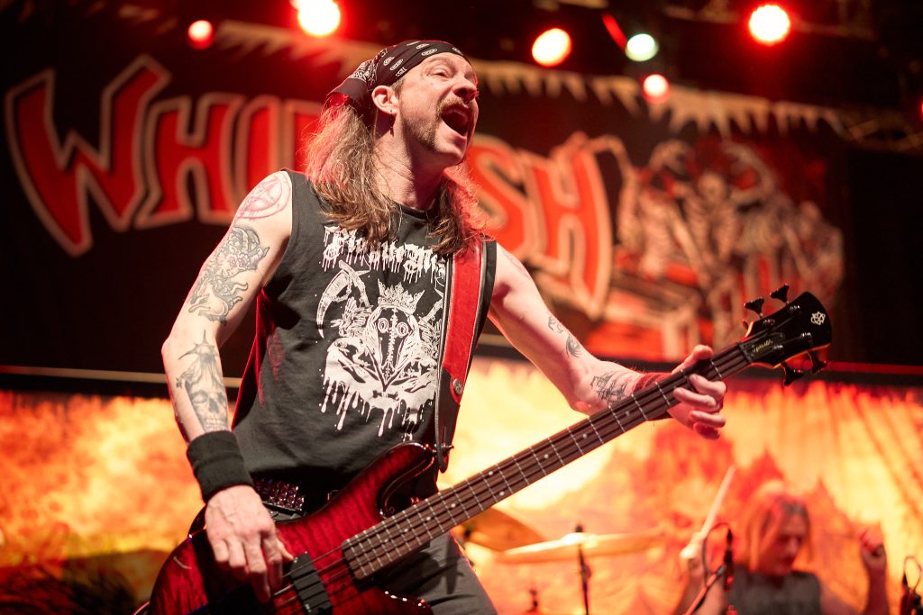 The energy that was stirred up by Dopelord, and commanded by The Varukers, was then unleashed when New Jersey Thrash band Whiplash graced the stage. With break-neck speed, the trio wasted no time playing ferocious renditions of their debut album classics, ‘Last Man Alive’, ‘Spit on Your Grave’ and ‘Red Bomb’. Frontman/guitarist Tony Portaro made a statement about the ‘Thrash, Doom, Punk and Grindcore’ platter that we were being treated to, which led to the biggest circle pit of the night so far. This electric energy culminated in their last song of the set, ‘Power Thrashing Death’.