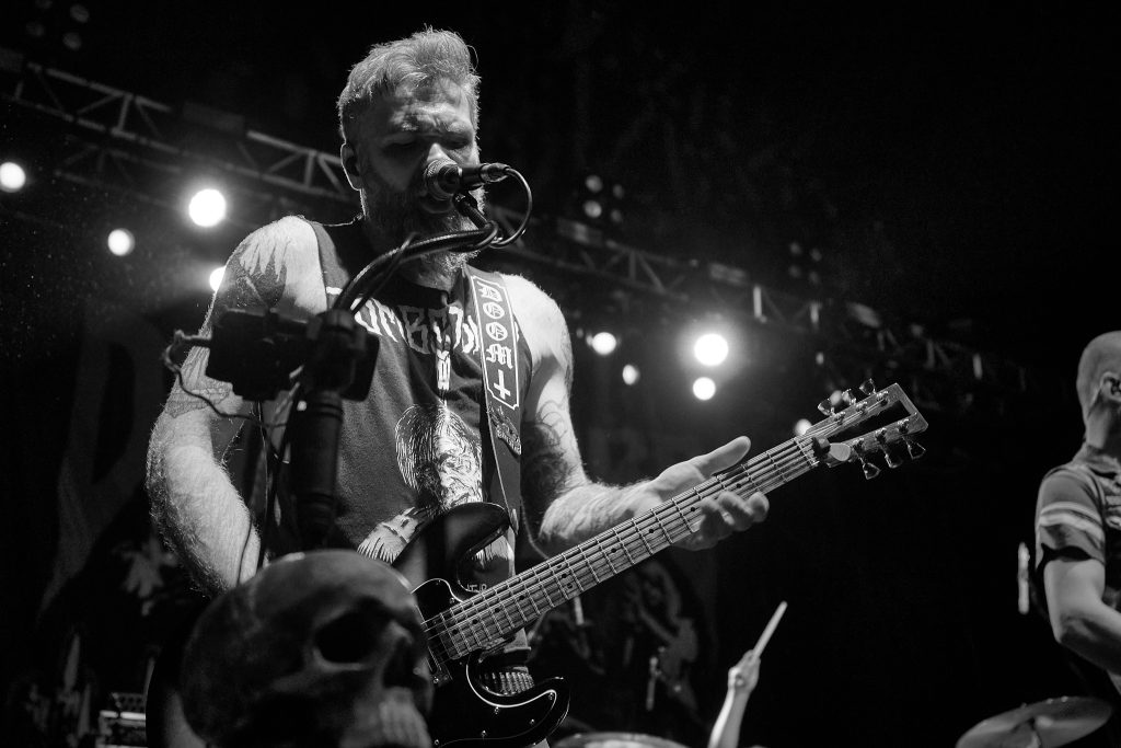 Next up on the menu was the classic Hardcore Punk quartet, The Varukers, who brought aggressive speed and political messaging that has remained as poignant as it was when the band formed in 1979. With an undeniable stage presence, and almost hypnotic aggression, frontman Anthony ‘Rat’ Martin led the band through their first few numbers of ‘How Do You Sleep’ and ‘Led to The Slaughter’, where the first moshpit of the night broke out. Their classic Punk sound quickly shifts to a much more aggressive Hardcore Punk feel, best seen in their last number of the night, ‘Damned and Defiant’ from their latest album of the same name.